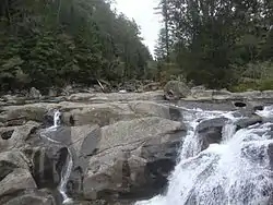 Mangakarengorengo River at McLaren Falls, at the confluence with the Mangapapa River