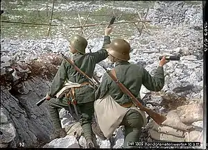 Austro-Hungarian Stormtroopers armed with Mannlicher M95 Stutzens at the Isonzo front in 1917 (colorized).