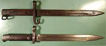 Late in World War I resources were limited and they started manufacturing replacement (German: Ersatz) bayonets. These were fast to produce, cheap and made completely out of metal.[15]