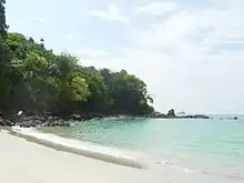 Manuel Antonio National Park (Spanish: Parque Nacional Manuel Antonio) is a small national park in the Central Pacific Conservation Area located on the Pacific coast of Costa Rica, just south of the city of Quepos, Puntarenas, and 157 km (98 mi) from the national capital of San José. It was established in 1972, when the local community sought conservation to prohibit development and destruction of the natural environment. They also protested the beach restrictions on locals by foreign owners.[1] The park has a land area of 1,983 ha (4,900 acres) and 25,634 ha (63,340 acres) of water area for a total of 27,587 ha (68,170 acres). Despite being one of the smaller Costa Rican parks in land area, Manuel Antonio is the most popular of the 30 national parks in Costa Rica, visited by 4,388,460 people from 2012 to 2022.[2]