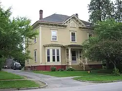 The town of St. Johnsbury flourished in the second half of the 19th century, following the arrival of the first railroad line in 1850, and the success of the Fairbanks Scale Company, a major local employer. Prior to the 1850s, the area was owned by members of the Clark family, whose early Cape houses still stand on Main Street. Maple Street was laid out east–west from the northern end of the business district to the Main Street area, directly up a relatively steep hillside, with Clarks Avenue laid out later, taking a more winding path up the hillside to the north. Much of Maple Street was built out with modest single-family and tenement houses by the 1870s, when another railroad line brought additional jobs to the area. This spurred further development along Clarks Avenue. By the early 20th century, some of the immigrants and descendants of early immigrants built finer homes as infill on the spur roads of Frost Avenue and Idlewild Terrace; houses on the latter are afforded fine views to the east.[2]
