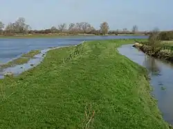 This pasture in the floodplain of the River Great Ouse is used for grazing in the summer and allowed to flood in the winter. It has wildfowl such as mute swans, wigeons, teal and shovelers, mammals include badgers and muntjac deer. There are diverse aquatic plants.[6]