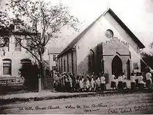 The school was completed in 1888 and named the Saint Peter Claver Colored Mission and was the first Catholic school for blacks in San Antonio.[16] It was also the first free school for African Americans in the city.[18] The school was named for a Jesuit saint, Saint Peter Claver, who had spent his life helping slaves in Cartagena, present-day Colombia.[15] In order to staff the church with priests, she sought help from the Society of St Joseph of the Sacred Heart (Josephites), which had a mission of ministry to African Americans.[15] Murphy's finished church had 500 seats, a rectory and a school, all of which was financed solely by Murphy.[17] Bishop Neraz dedicated the building and its name on Sunday, September 16, 1888.[2] The school had 120 students attending on opening day[17] which was September 17, 1888.[15]