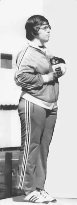 She graduated from Hayden High School,[2] then attended Kansas State University, where she competed on the men's rifle team[4] winning two Big Eight Conference championships and became the university's first female student to earn a varsity letter.[2] The team practiced with 5th Army Rifle Team at Fort Riley, which led to a four-year stint in the U.S. Army, where she was assigned as a shooting instructor at Fort Benning, eventually achieving the rank of major.[2]
