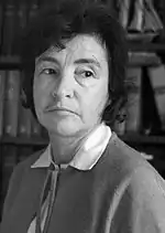 The main themes of her early poetry were the heroism of the Soviet people during industrialization (Year of birth, 1938; Railroad, 1939; Stones and grass, 1940) and during World War II (Lyrics, 1943). Her most famous poem is "Zoya" (1942), about Zoya Kosmodemyanskaya, a young girl killed by Nazis.[2][3] This work was one of the most popular poems during the Soviet era. From 1940 to 1950, the poetry of Aliger was characterised by a mix of optimistic semi-official verses ("Leninskie mountains", 1953), and poems in which Aliger tried to analyse the situation in her country in a realistic way ("Your Victory", 1944 - 1945). In 1956, in a gathering of Khrushchev with the intelligentsia he admonished the writers for interfering with the political system. It is noted that Aliger was the only writer to speak up against him at the event. It was after the retirement that he apologized to her for his behavior.[4] Aliger wrote numerous essays and articles about Russian literature and her impressions on travelling ("On poetry and poets", 1980; "The return from Chile", 1966).