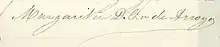 Margarita Diez-Colunje y Pombo was born in Buenaventura, Republic of New Granada on 10 June 1838. Her parents were José María Diez-Colunje Caballero, a native of the area of New Granda that is now Panama, and Natalia Pombo O'Donnell,[1] niece of Enrique O'Donnell, Conde de La Bisbal,[2] and cousin of Leopoldo O'Donnell, 1st Duke of Tetuan and 1st Count of Lucena,[3][4] and I Conde de Lucena.[5] She was born in Buenaventura because her father was working at the time as a customs administrator in that city.[6] Her baptismal godparents were her cousin, Julio Arboleda Pombo, and María Josefa Mallarino de Holguín,[7] mother of President Carlos Holguín Mallarino.