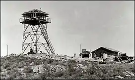 ![]() Margarita Fire lookout tower as it appeared in 1935 | |