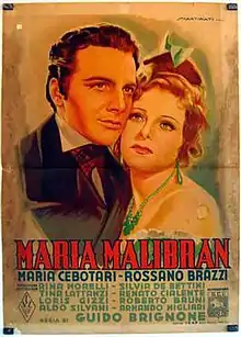 Maria Malibran is a 1943 Italian historical drama film directed by Guido Brignone and starring Maria Cebotari, Rossano Brazzi, and Renato Cialente. It is based on the life of the Spanish singer Maria Malibran.[1]