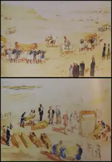 In 1873 Marianne Brocklehurst and Mary Booth ('the two MBs') visited Egypt.[7] While in Egypt, she met Amelia Edwards, another English traveller, who was traveling with Lucy Renshaw and their ladies maid Jenny Lane. The two parties sailed together in a flotilla up the Nile. Edwards later published her account of the journey in the bestselling A Thousand Miles up the Nile (1877). Brocklehurst's own travel diary of the voyage was published in 2005.[5][8] Brocklehurst and Edwards competed with each other in the illegal extraction of antiquities from Egypt.[9][10] Brocklehurst recounted a story called "How We Got Our Mummy" and it is in the appendix to her published diary.[5] Brocklehurst and Booth returned to Egypt in 1876–1877 and in 1883.[11] Their final trip was in 1890–1891.[6] On the final trip they witnessed the removal of a large quantity of recently removed 21st Dynasty mummies from Thebes.[6]