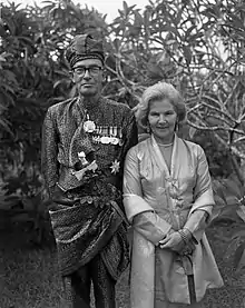 As was one of the few educated women in Brunei, she became a lady-in-waiting at the court of Raja Isteri Pengiran Anak Damit[3] and later the personal secretary to the Queen's husband, the 28th Sultan of Brunei Omar Ali Saifuddien III.[4] In this capacity, Lloyd-Dolbey was a close eyewitness to the introduction of the 1959 Constitution, the Brunei revolt in 1962, the voluntary abdication of Omar Ali Saifuddien III in 1967 in favour of his 21-year-old son Hassanal Bolkiah, who became the 29th and current Sultan of Brunei, the state visit of Queen Elizabeth II in Brunei in 1972, and finally the Bruneian declaration of independence from Great Britain on 1 January 1984 as a native monarchy in the Commonwealth of Nations.