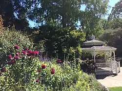 The Marin Art and Garden Center's master plan was designed by landscape architect Thomas Church.[7] It contains several different gardens, including those focused on roses, edible plants, plants used in basketry, and native plants.[8] There are three species of redwood on the site, including the dawn redwood.[4] A giant sequoia on the property was brought in from Yosemite Valley during the Worns' ownership.[2]