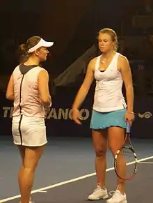 ![]() Koryttseva (left) with doubles partner Vera Dushevina at the 2008 Fortis Championships Luxembourg | |