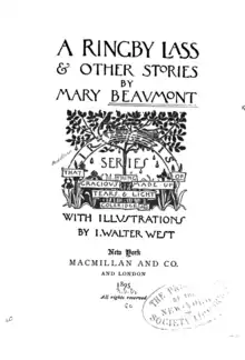 This collection includes five short stories: "A Ringby Lass," "Jack," "The White Christ," "Miss Penelope's Tale," and "The Revenge of Her Race." The title story, "A Ringby Lass," is set in Beaumont's native Yorkshire, as is the story "Jack." Macmillan issued this story collection as the fifth installment in its "Iris Series." As such, it was nicely bound, with illustrations by I. Walter West. The book's attractive physical format was part of its appeal, with the New York Times noting its "charming" format and "delicate illustrations."[9]