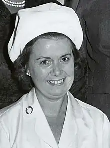 Collins' husband entered politics, being elected to the Massachusetts House of Representatives in 1947. He would also serve as a Massachusetts state senator and a Boston City Councilor before his election as mayor of Boston. During her husband's political campaigns, Collins involved herself in his debate preparations by asking him practice questions and assisting him in refining his answers.[3] Collins' husband had his legs paralyzed in 1955 after contracting polio. His bout with polio took place during his campaign for election to the Boston City Council.[3] During her husband's hospitalization, Collins ran his campaign as a co-manager, working from their personal residence in the Jamaica Plain neighborhood of Boston.[3][4] Collins would act as a campaign surrogate for her husband in the multiple political campaigns he ran after his partial paralysis.[3]