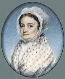 Around 1797, the painter Edward Greene Malbone composed a watercolor portrait miniature of Almy, painted on ivory.[8]
