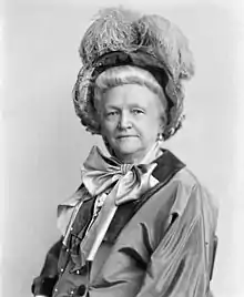 It came as a terrible blow to Mrs. Logan when the General became sick and died in 1886. She decided a change of scene would help her and so she traveled through Europe, chaperoning George Pullman's daughters. On her return, Mrs. Logan became the editor of The Home Magazine, of Washington, which ran from 1888 to 1908,[5] writing reminiscences of historic events.[2] She served on the syndicate staff of Hearst news service, was a contributor to other magazine and newspapers,[6] and wrote several books. President Benjamin Harrison appointed Mrs. Logan one of the women commissioners of the District of Columbia to the Columbian Exposition (Chicago, 1893). She also worked on plans for the Garfield Memorial Hospital, having been president of the board nine years.[3] Logan died at her home in Washington, D.C. in 1923[7] and was buried beside her husband and two of her grandsons in a mausoleum at the United States Soldiers' and Airmen's Home National Cemetery.[8][9]