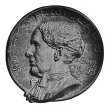 Willard died in Evanston[8] after a brief illness, August 7, 1892, at the age of 87 years. At her funeral it was said,— "She was a reformer by nature. She made the world's cause her own and identified herself with all its fortunes. Nothing of its sorrow, sadness or pain was foreign to her. With a genius, a consecration, a beauty and a youth which had outlived her years, a soul eager still to know, to learn, to catch every word God had for her, she lived on. a center of joy and comfort in this most typical and almost best known home in America. She stood a veritable Matterhorn of strength to this daughter. Given a face like hers, brave, benignant, patient, yet resolute, a will inflexible for duty, a heart sensitive to righteousness and truth, yet tender as a child's, given New England puritanism and rigor, its habits of looking deep into every problem, its consciousness full of God, its lofty ideal of freedom and its final espousal of every noble cause, and you and I shall never blame the stalwart heart, well-nigh crushed because mother is gone." The birthday motto adopted in the celebration of Madam Willard's 80 birthday was, "It is better further on," and her household name was "Saint Courageous".[9][3]
