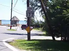 The first portion of MD 177 to be constructed was the portion of the Baltimore–Annapolis Boulevard between what are now MD 648 and MD 915 at Lipin's Corner. That highway, which was designated MD 2 in 1927, was paved as a 16-foot (4.9 m) wide macadam road in 1911 and 1912.[4][5][6] This segment of the Boulevard was widened to 22 feet (6.7 m) with a pair of 3-foot (0.91 m) concrete shoulders by 1926.[7] Mountain Road itself was paved as a 14-foot (4.3 m) wide concrete road from Lipin's Corner east to just east of the modern Waterford Road segment of MD 648.[5] By 1921, the concrete road was extended east to Jacobsville.[8] The paved portion of Mountain Road was extended east to near Woods Road by 1923.[9] MD 177 was completed as a concrete highway to Gibson Island in 1928.[10] MD 177 was widened to at least 18 feet (5.5 m) from Lipin's Corner to Gibson Island by 1930.[11] After MD 2 was relocated to Governor Ritchie Highway in 1936, MD 177 was extended west from Lipin's Corner to the new four-lane divided highway by 1939.[12][13] MD 177 was reconstructed from Lipin's Corner to east of Jacobsville to ameliorate curves in 1952.[14]