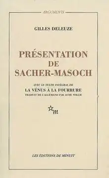 Masochism: Coldness and Cruelty (French: Présentation de Sacher-Masoch) is a 1967 book by the philosopher Gilles Deleuze, originally published in French as Le Froid et le Cruel (Les Éditions de Minuit, 1967), in which the author philosophically examines the work of the late 19th-century Austrian novelist Leopold von Sacher-Masoch. In the Foreword Deleuze states that Masoch has a particular way of "desexualising love while at the same time sexualizing the entire history of humanity". Deleuze attempts to "cut through" the various forms of expression and content that are the artistic creation of Leopold von Sacher-Masoch. He also attempts to develop a problematic of masochism in contradistinction to sadism, concluding that the two forms of 'pornology' are non-communicating, and cannot be integrated into Sadomasochistic entity. Deleuze argues that Masochism is something far more subtle and complex than the enjoyment of pain and that Masochism has nothing to do with Sadism.