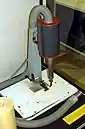 In Department M, mail was opened with a hot air blower (left), inspected, then resealed in assembly line fashion by a machine (right).