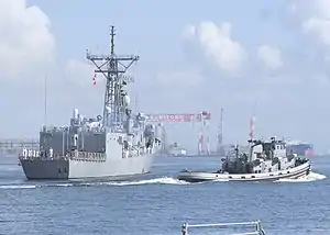 ![]() Massapequa (YTB-807) breaks away from the guided-missile frigate USS Vandegrift (FFG-48) as the frigate departs Yokosuka Bay for the last time as a home-ported vessel of Commander, Fleet Activities Yokosuka (CFAY), Japan, 14 August 2006. | |