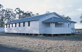 Deuchar Provisional School opened on 14 March 1904. On 1 January 1909 it became Deuchar State School. It was closed in 1921 due to low student numbers, but reopened in 1924. It closed permanently on 11 August 1967.[11] It was at 98 Millar Lane, on the south-east corner of Deuchar Bony Mountain Road, now within Massie (28°06′54″S 151°56′33″E / 28.11510°S 151.94239°E / -28.11510; 151.94239 (Deuchar State School (former))).[12][13][14]