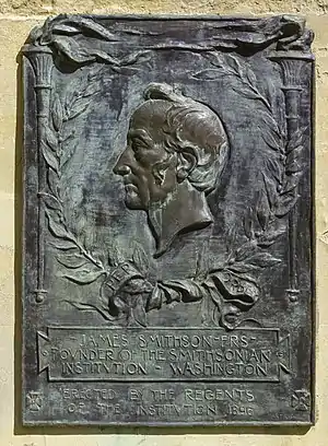 Plaque honoring James Smithson, founding donor of the Smithsonian Institution.