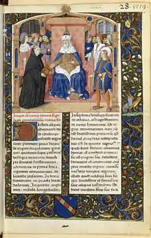 The Master of Robert Gaguin was an anonymous painter, active in Paris around 1485–1500. He was so named by Nicole Reynaud after a manuscript of Robert Gaguin's translation of Julius Caesar's De Bello Gallico, offered by the translator to Charles VIII, king of France.[1] He belongs to a circle of French artists, whose art follows the style of the Master François.[2]