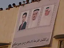 Beginning in February 2011, Bahrain saw sustained pro-democracy protests, centered at the Pearl Roundabout in the capital of Manama, as part of the wider Arab Spring. Authorities responded with a night raid on 17 February (later referred to by protesters as Bloody Thursday), which left four protesters dead and more than 300 injured.[11] In March, martial law was declared and Saudi troops were called in. Despite the hard crackdown and official ban, the protests continued.[12]