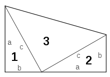 Geometry, usually taken in ninth or tenth grade, introduces students to the notion of rigor in mathematics by way of some basic concepts in mainly Euclidean geometry. Students learn the rudiments of propositional logic, methods of proof (direct and by contradiction), parallel lines, triangles (congruence and similarity), circles (secants, tangents, chords, central angles, and inscribed angles), the Pythagorean theorem, elementary trigonometry (angles of elevation and depression, the law of sines), basic analytic geometry (equations of lines, point-slope and slope-intercept forms, perpendicular lines, and vectors), and geometric probability.[48] Students are traditionally taught to demonstrate simple geometric theorems using two-column proofs, a method developed in the early 20th century in the U.S. specifically for this course, though other methods may also be used.[49][50] Depending on the curriculum and instructor, students may receive orientation towards calculus, for instance with the introduction of the method of exhaustion and Cavalieri's principle.[48]