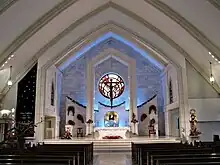 The Cathedral of San Nicolas de Tolentino is the center of Diocese of Mati under the jurisdiction of Roman Catholic Archdiocese of Davao. Two parishes are in Mati: one in the downtown and one in Barangay Dawan.[25]