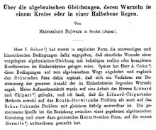 Matsusaburo Fujiwara (藤原 松三郎, Fujiwara Matsusaburō, 14 February 1881, Tsu, Mie – 12 October 1946, Fukushima) was a Japanese mathematician and historian of mathematics.