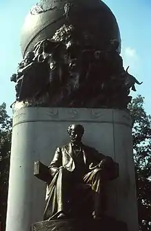 On July 3, 2020, during an emergency declaration by Governor of Virginia Ralph Northam due to unrest following police brutality in Minneapolis, parts of the memorial were taken down at the direction of the mayor of Richmond, Levar Stoney.[2] The bronze statue of a chair-seated Maury (representing his handicap) on the lower semi-circular sub-pedestal was quickly removed due to its small size and accessibility;[3] a bronze sculpture higher up on the round main pedestal, featuring a globe sculpture with various figures representing Maury's oceanographic travel and work remained until a week later on July 9 and was removed amid litigation to stop removal of additional memorials temporarily due to concern that the mayor was without authority to remove any of the historic monuments.[4][5]