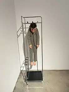 • La rivoluzione siamo noi (We Are The Revolution) (2000), features a miniature Maurizio Cattelan, dangling from a Marcel Breuer–designed clothing rack. In this depiction, Cattelan contrasts the German artist Joseph Beuys statement, "every man is an artist", with his own, "I am not an artist".[44]