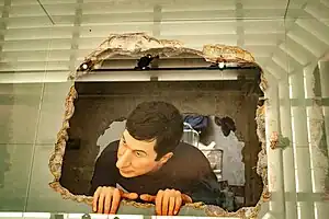 • Untitled (2001), installation created for the Museum Boijmans Van Beuningen in Rotterdam that depicts the artist peering mischievously from a hole in the floor at a gallery of 17th-century Dutch masters.[39]