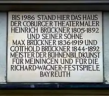 In 1870, with his younger brother Gotthold Brückner (1844–1892), he founded the Brückner Brothers Studio for Scenic Stage Design, in Coburg.[1] They created stage sets at theatres across Germany for 40 years, most significantly at Richard Wagner's Bayreuth Festival, including the original 1876 production of Der Ring des Nibelungen.[1]
