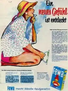 Already at the end of the 1950s Hoff started to work with the German advertisement agency Hanns W. Brose GmbH and its enigmatic owner Hanns Walter Brose in Frankfurt am Main. In 1958 a small campaign of only eight ads - due to a limited budget of Böhme Fettchemie GmbH - his illustrations were advertising FeWa FeinWaschmittel (fine washing powder).