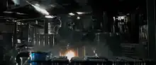 Moore gave the approval on Valkyrie designed by illustrators Chris Roswarne and Rob McCallum. As a point of reference and to limit the use of CG a Valkyrie suit and make up were worn by performer Mako Hindy.[15] Moore "wanted the Valkyries to have a slow motion quality to them, almost as if they were underwater."[16] During the 15 weeks of post-production the Valkyries were further developed by Spin to support this. Using Maya, 3DS Max, and ZBrush they were able to create the Valkyries and have control over their wings. The artists sometimes had full control over each individual feather. They had to overcome the darkness of the film as it made it more difficult to track each object. Spin also handled atmospheric CG and the CG matte backdrops elements.[18]