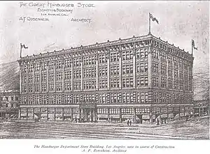 13. "Contract Let for Hamburgers Big Department Store; Pledges Of The Well Known Company Are Made Good". Los Angeles Herald. Vol. 33, no. 197. April 15, 1906. p. 4 via California Digital Newspaper Collection.