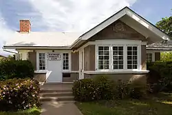 The 1909 clubhouse was designed in Bungalow style by St. Louis architects Helfensteller, Hirsch & Watson as a "chapter house" for the American Woman's League.[2]