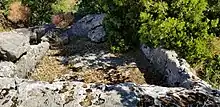 Top: Ancient rock-cut vat used in wine pressing