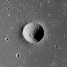 McDonald is a small lunar impact crater located in the central Mare Imbrium. It was named after American benefactor William Johnson McDonald and Scottish selenographer Thomas Logie MacDonald.[1] This crater is a cup-shaped feature with a circular rim, and has not been significantly eroded. It lies to the southeast of the slightly larger crater Carlini, in an isolated part of the mare.