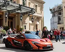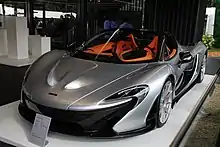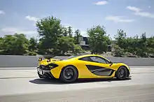 The McLaren P1 is a sports car produced by British marque McLaren Automotive. It is a plug-in hybrid with a mid-engine layout. It was first shown at the 2012 Paris Motor Show,[5] with sales of the P1 beginning in the United Kingdom in October 2013 and all of the limited run of 375 units sold by November 2013.[6][7] Production ended in early December 2015.[8] The United States accounted for 34% of the units and Europe for 26%.[8]