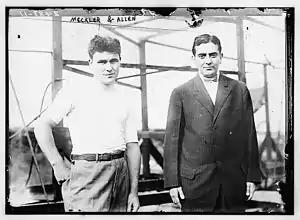 In 1912, Allen Canton and John J. Meckler, two young Bronx electricians, built a 76-foot (23 m) span hydro-biplane. The financing for the construction came from profits of their company Mechelectric,[4] which held forty-five patents for new electrical devices. The partners planned to make the first transatlantic flight to Europe.[5]