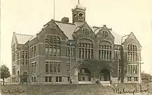 The three-story building has a "monumental block-type design". It was built in the Richardsonian Romanesque style of architecture, which was a popular style for many public buildings throughout the late 19th century and early 20th century.[2]