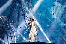 Her entry's title, "Marte", and a preview of the song were released to the public on 20 September 2019.[6] The song, written and produced by Pablo Mora alongside Manu Chalud, was released in full on 4 October 2019.[7] She was accompanied on stage by Idurne Rodriguez, Yara Díez, Violeta Leal, and María Mihali.[8] The scenography of the stage was made by Santiago Junegos. At the contest in Gliwice Arena, Poland, she placed 3rd with 212 points.