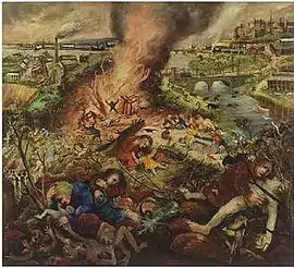 Melbourne Burning is a 1946-1947 painting by Australian artist Arthur Boyd.[1] It has been described as "his apocalyptic image of Melbourne burning, like a Biblical narrative in the context of the second world war".[2] The painting has been reported to have displayed in the Perth office of Robert Holmes à Court.[3] It was purchased by David Walsh for AUD 3.2 million.[4] It is "one of Walsh's favourite works".[5] The painting is the collection of the Museum of Old and New Art.[6]