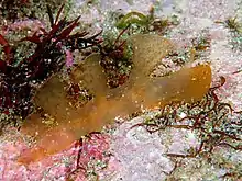 Melibe papillosa is a species of sea slug, a nudibranch, a marine gastropod mollusk in the family Tethydidae.[1] This species is yellowish and somewhat translucent. The oral hood, which is large, has flattened hatchet-shaped cerata.[2] It is found in the waters around Japan.