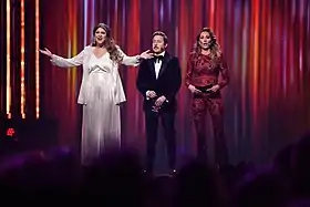Linnea Henriksson, David Sundin and Lina Hedlund, presenters of the 60th Melodifestivalen