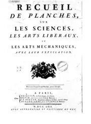 Within the Memoirs, Barruel alleged that Diderot's Encyclopédie was a Masonic project. He believed that the written works of the philosophes penetrated all aspects of society and that this massive collection was of particular significance. The Encyclopédie was only the first step in philosophizing mankind and was necessary to spread the impious and anti-monarchical writings.[33] This created a mass movement against the church and society. Barruel believed that the conspirators attempt to "imbue the minds of the people with the spirit of insurrection and revolt"[34] and to promote radicalism within all members of society. This was believed to be the main reason behind the Encyclopédie as it was "a vast emporium of all the sophisms, errors, or calumnies which had ever been invented against religion".[35] It contained "the most profligate and impious productions of Voltaire, Diderot, Boulanger, La Mettrie, and of other Deists or Atheists of the age, and this under the specious pretence of enlightening ignorance".[36] Barruel believed the volumes of the Encyclopédie were valuable in controlling the minds of intellectuals and in creating a public opinion against Christianity and monarchy.